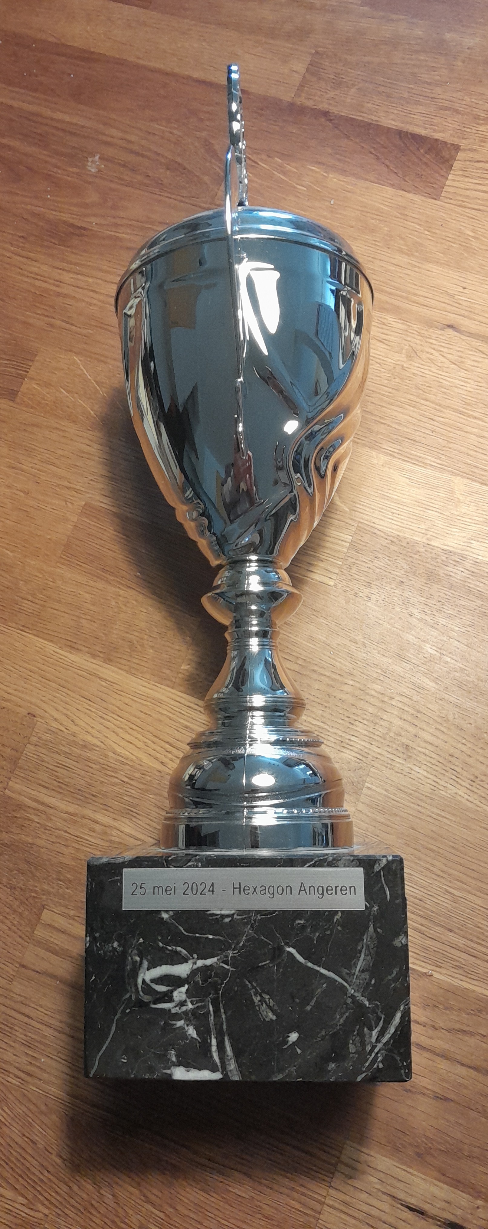 Tijdens het toernooi verdedigd Hexagon uit Angeren de Wisselbeker zie de foto.